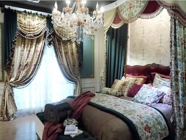 特点:三层帘由纱帘、布帘和幔帐三部分组成,颜色和图案偏于华丽沉稳,这类窗帘还会搭配装饰性很强的挂绳以及精致的流苏。