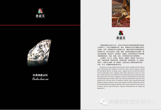 奥缇美是融合东西方文化,传承中外软装艺术经典的国际整体软装设计定制中心。公司以传播国际时尚、奢华、典雅等艺术设计精髓与弘扬中华诚信、内敛、和谐等哲学文化底蕴为己任,囊括引领时代软装潮流的世界顶级产品,倾力打造布艺、家具、壁纸、饰品等软装配饰艺术殿堂,竭诚为高端别墅、酒店会所、餐饮娱乐、精装房、样板房等各类个性空间需求提供配套设计、体验、销售、优装、升级等国际化设计定制服务。
