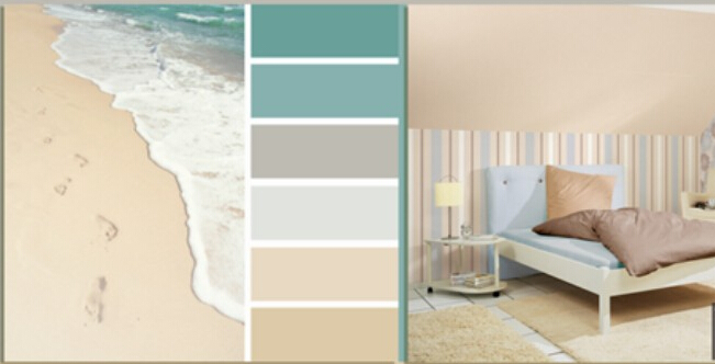 清新的海洋蓝,与米色调搭配,让人联想到海洋与沙滩,十分闲适。